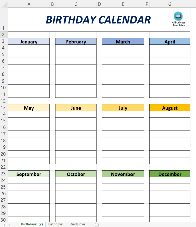 免费 Birthday Anniversary Calendar Template 样本文件在 allbusinesstemplates com