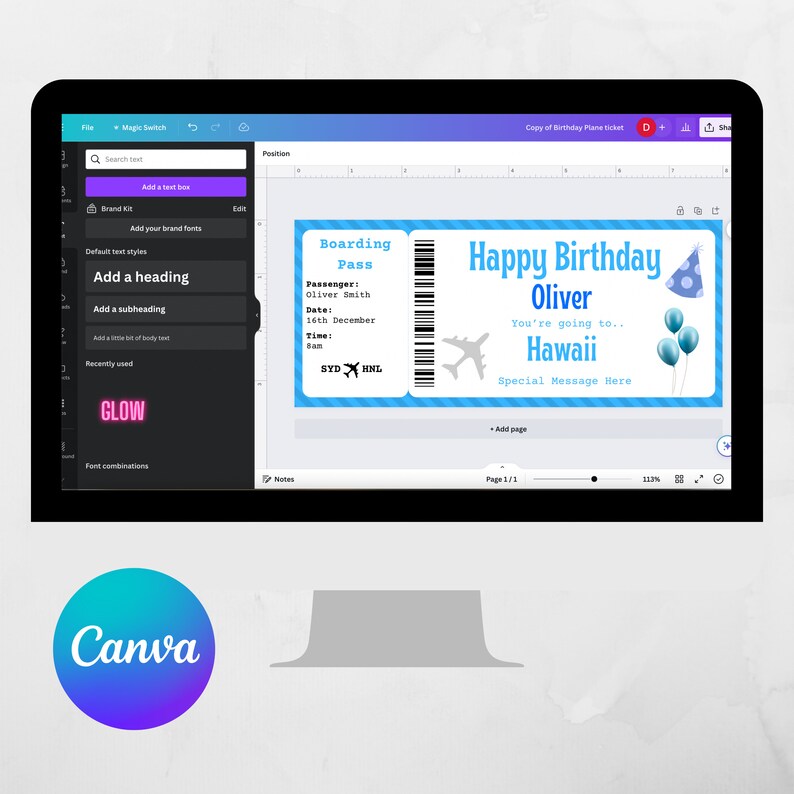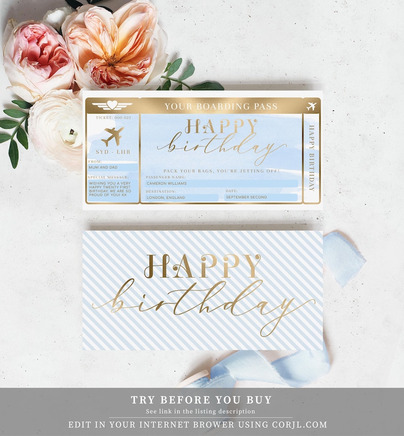 Birthday Boarding Pass Template Editable Customizable Ticket for