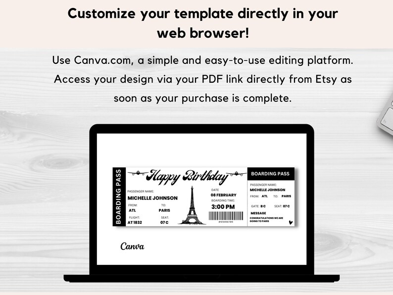 Birthday Boarding Pass Template Editable Boarding Ticket Etsy