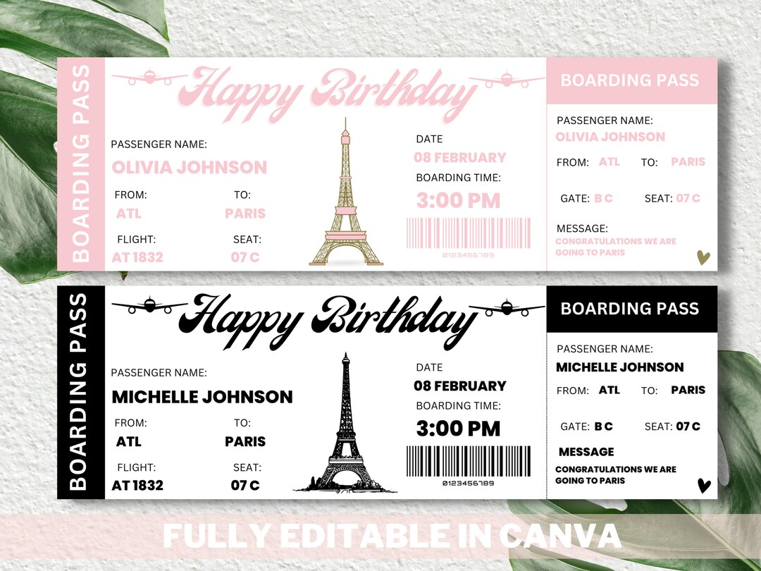 Birthday Boarding Pass Template Editable Surprise Trip Plane Etsy