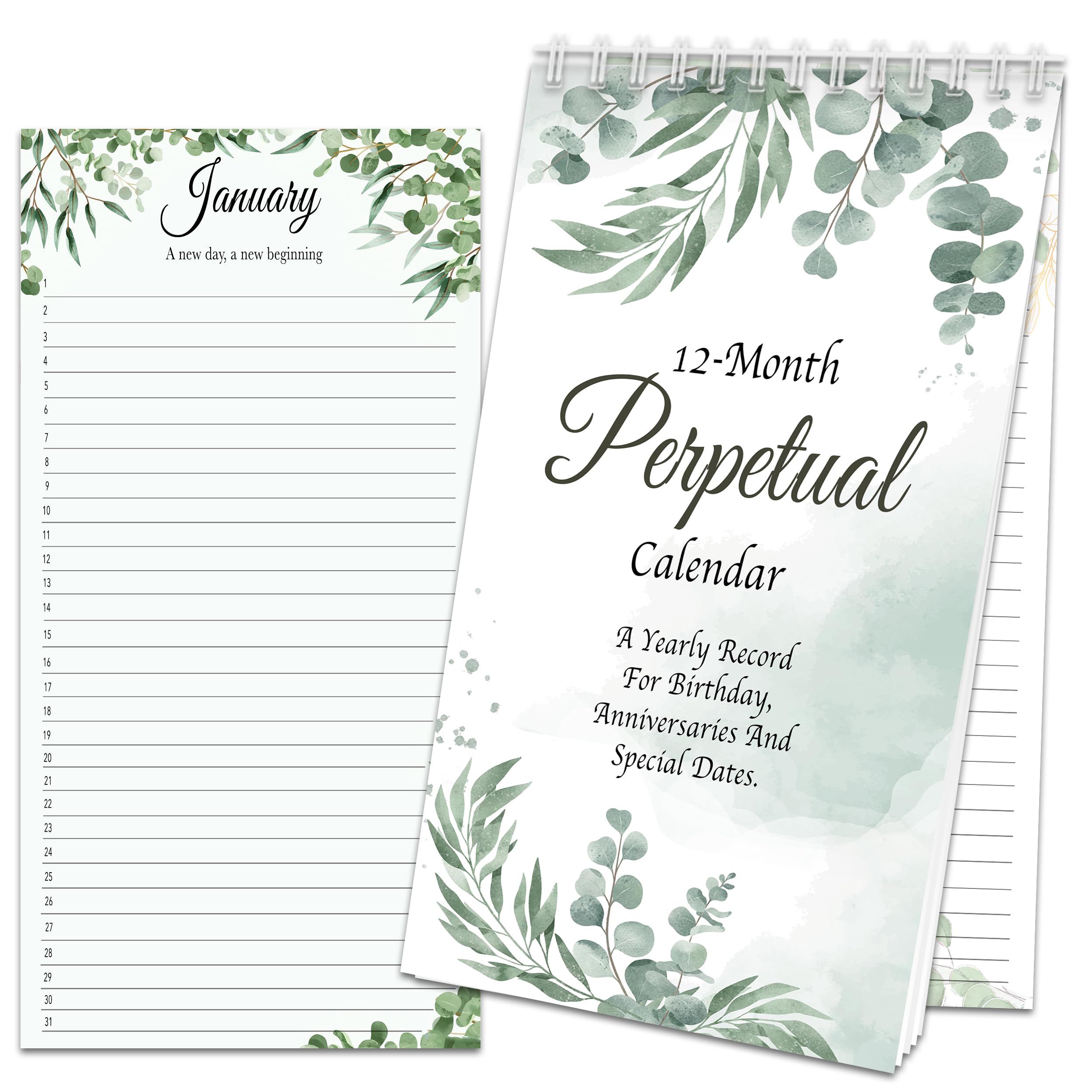 Perpetual Birthday Calendar Book Reminder 5x10 Inches Greenery Wall
