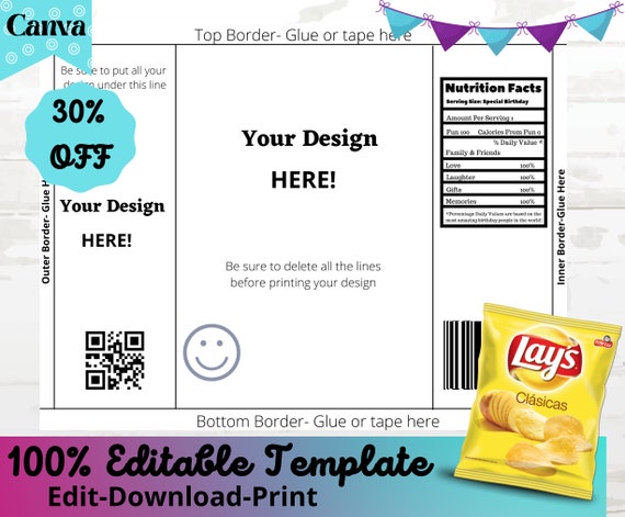 EDITABLE Chip Bag Template Chip Bag Template Canva Chip Bag Etsy Hong