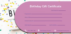 Birthday Gift Certificate Sample Templates for WORD Professional