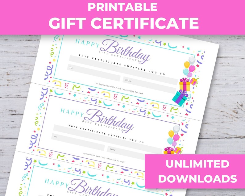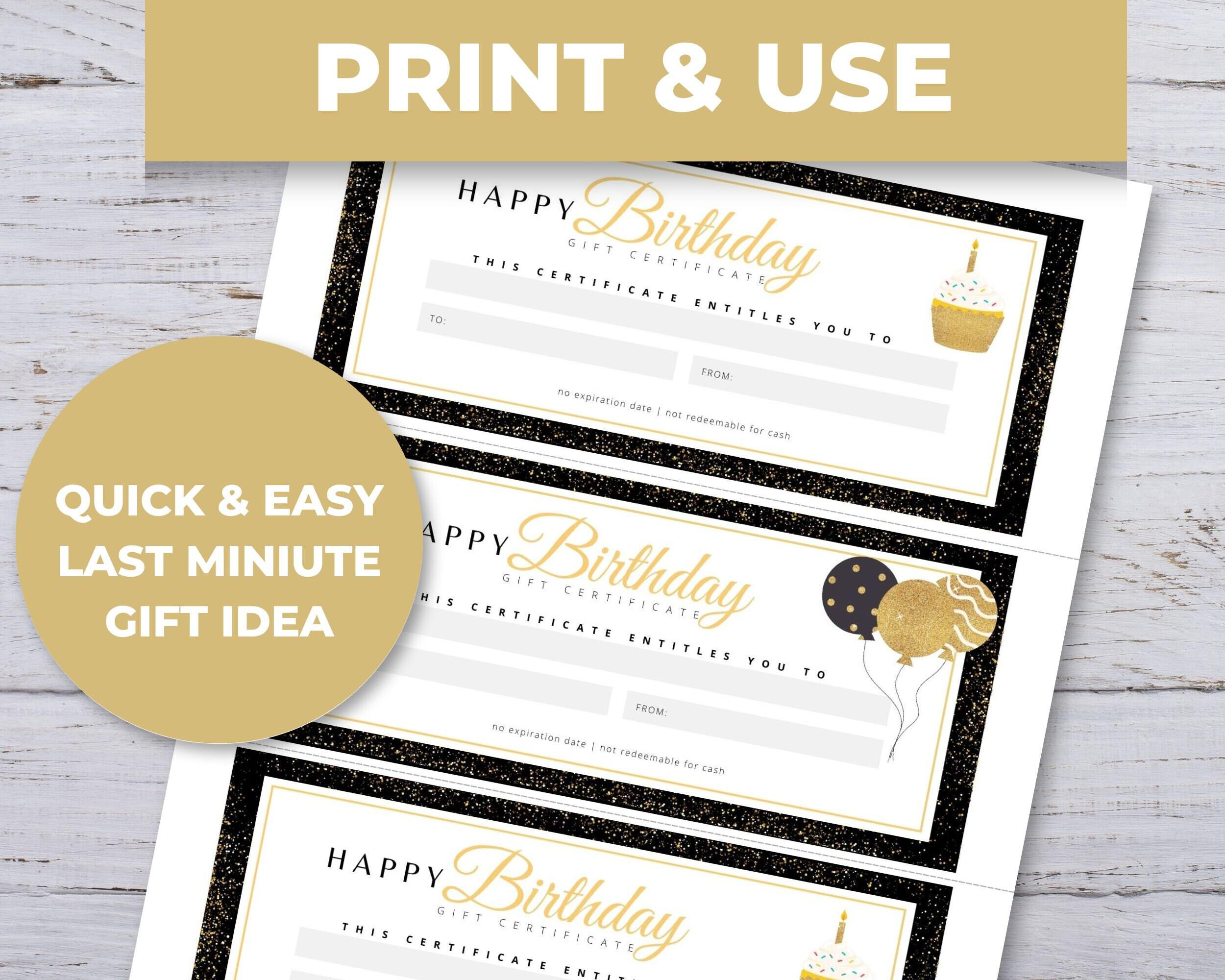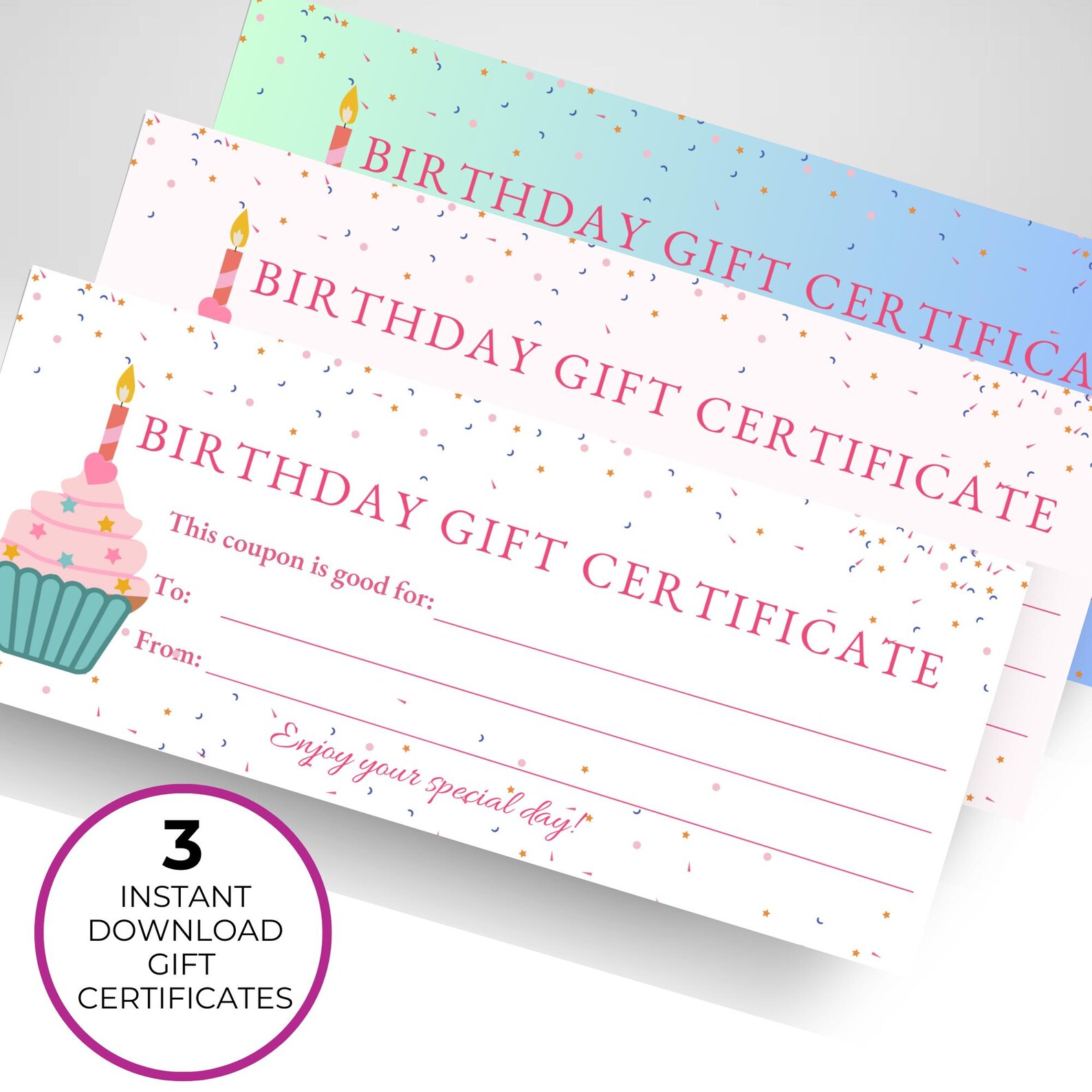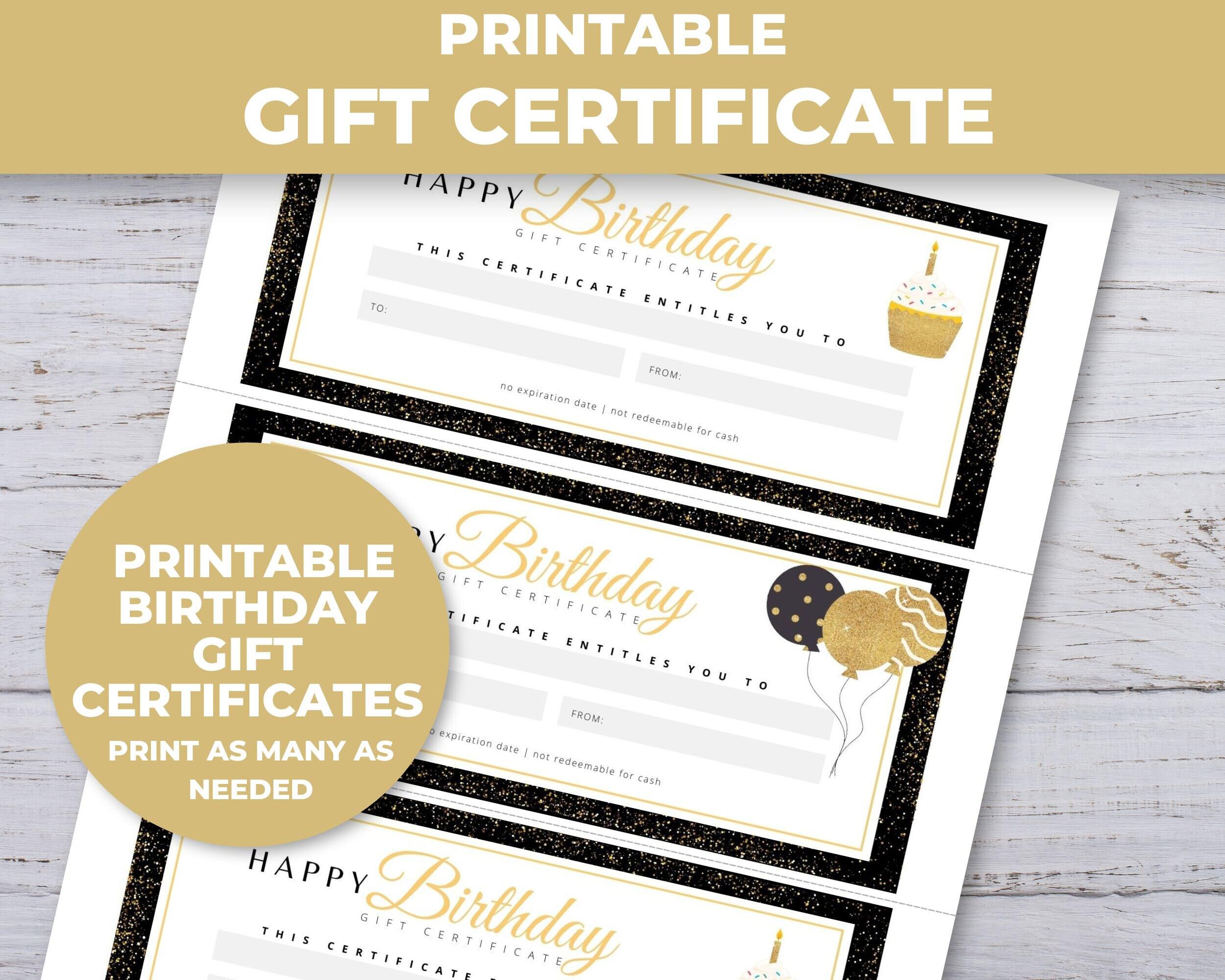 Birthday Gift Certificate Printable Gift Certificate Etsy