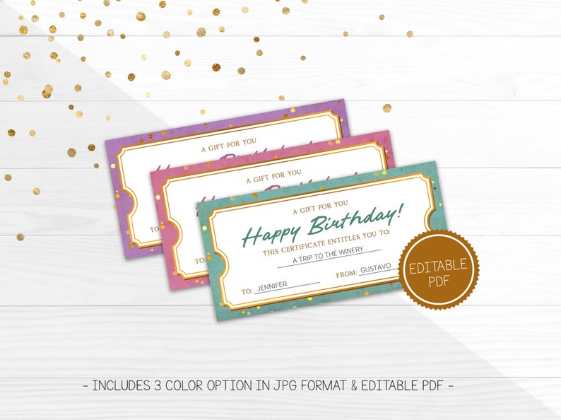 Happy Birthday Gift Certificate Template Printable Unisex Etsy