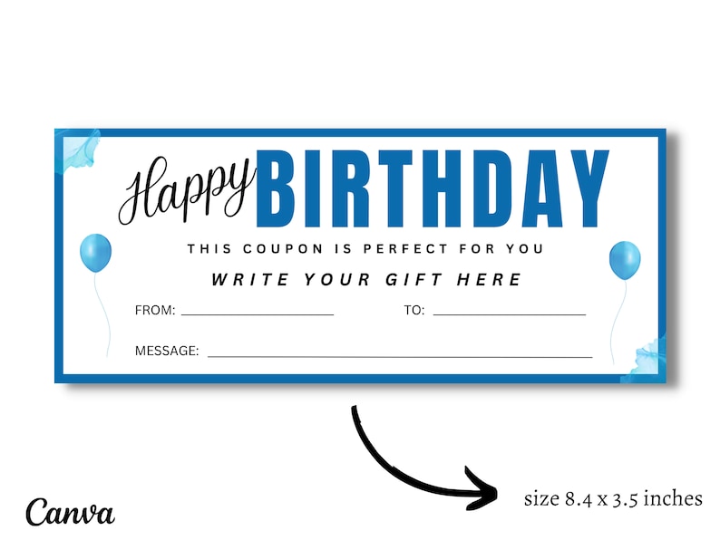Birthday Voucher Gift Certificate Customisable Canva Template