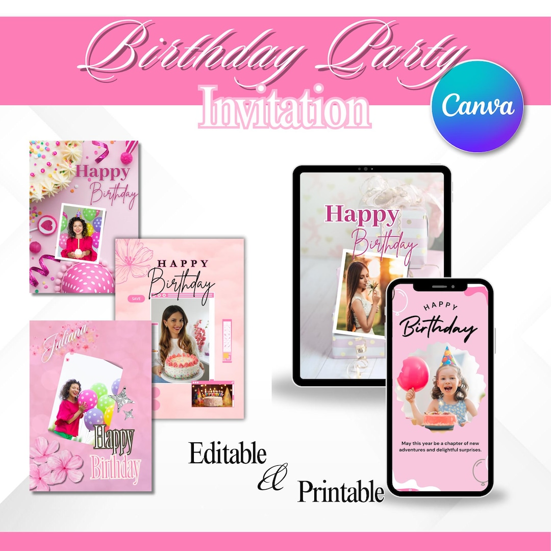 Customizable Birthday Invitation Template: Editable Printable DIY