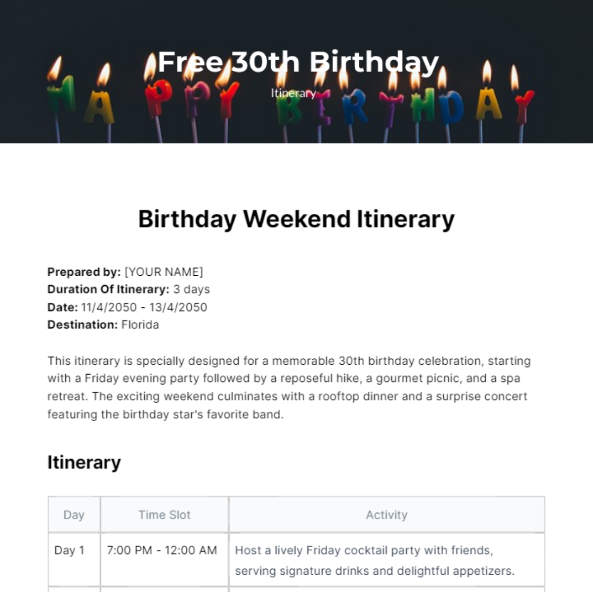 🥳 Free Birthday Itinerary Templates thegoodocs com