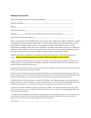 Fillable Online Birthday Party Contract Fax Email Print pdfFiller