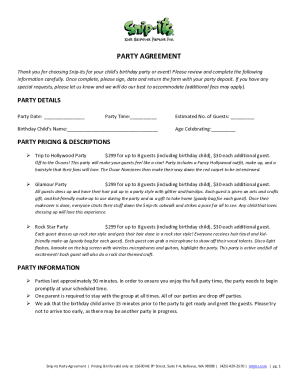Birthday party agreement Form Fill Online Printable Fillable Blank
