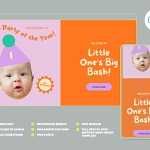 Editable 1st Birthday Party Website Invitation Template Etsy