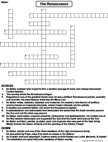Renaissance Crossword Puzzle: Key Figures Concepts