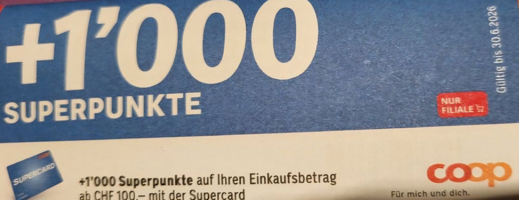 Gutschein Coop 1000 Superpunkte ab 100Fr gültig bis 2026 (Neu (gemäss