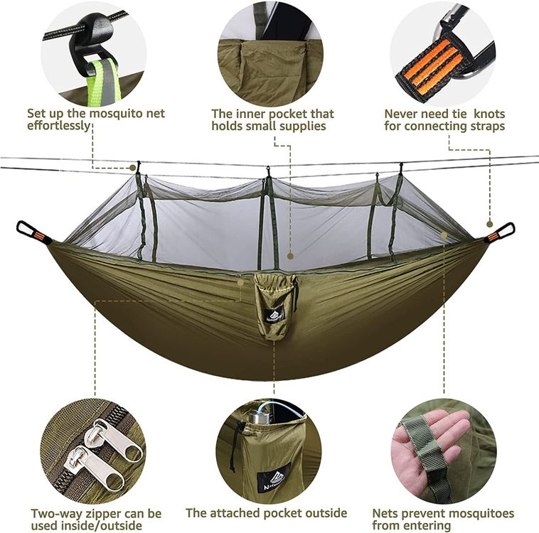 Hängematte mit Moskitonetz Nylon bis 2 Personen Tragtasche (Neu und