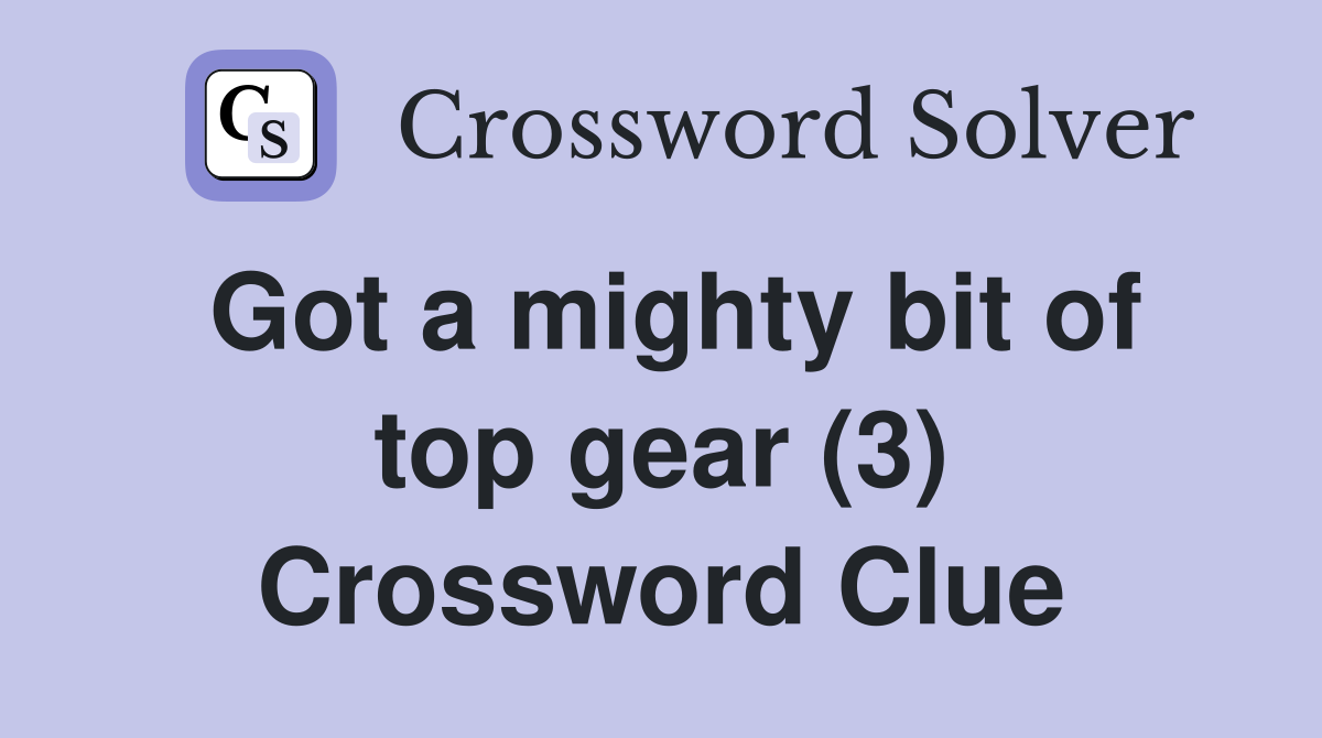 Got a mighty bit of top gear (3) Crossword Clue Answers Crossword