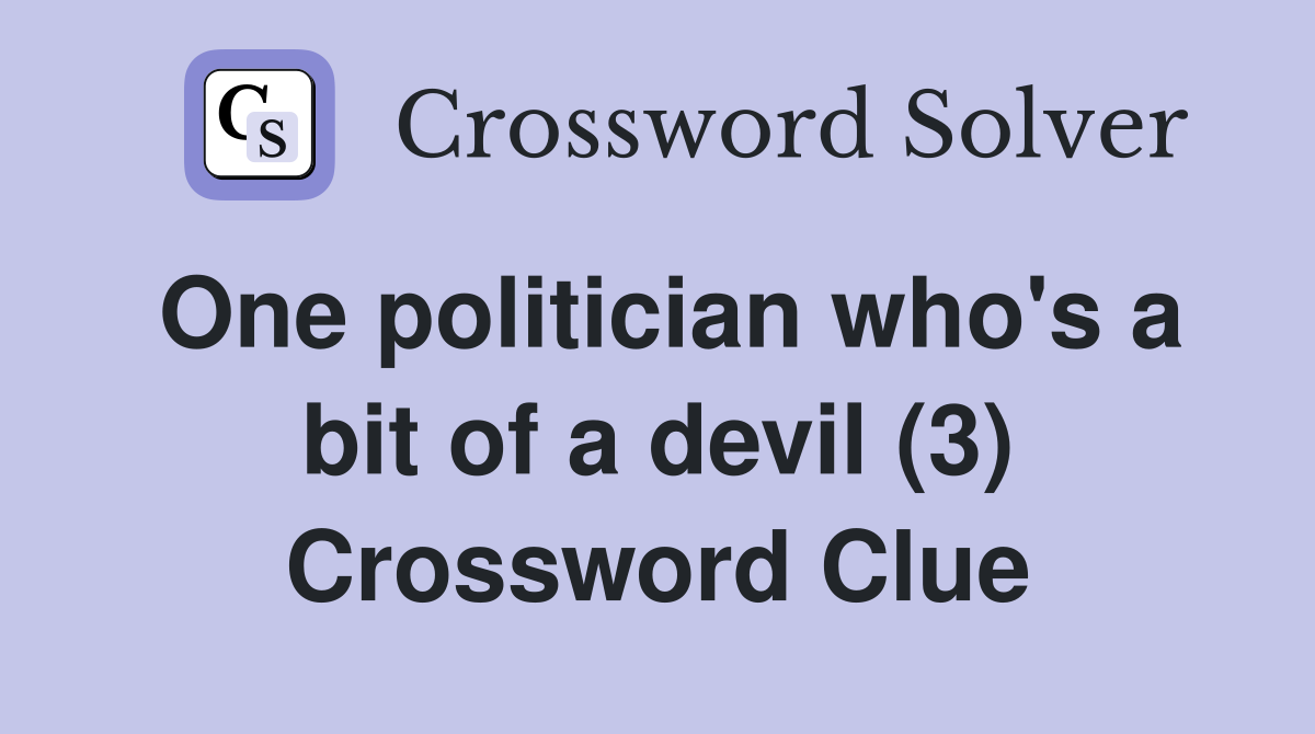 One politician who #39 s a bit of a devil (3) Crossword Clue Answers