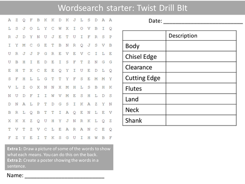 Design Technology Tools Drill Bit KS3 GCSE Wordsearch Crossword Anagram