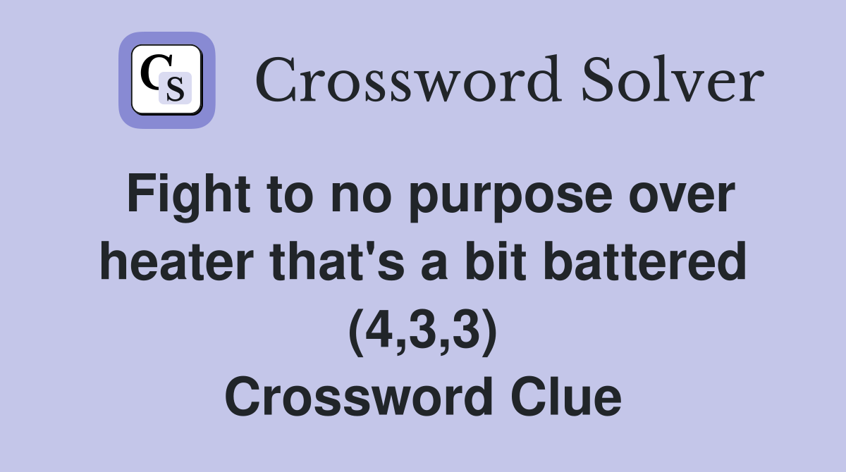 Fight to no purpose over heater that #39 s a bit battered (4 3 3
