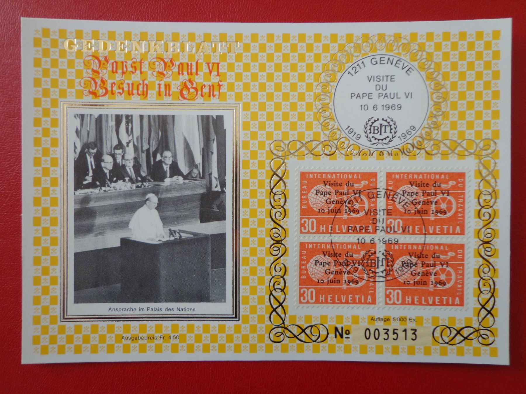 Maximumkarte MK 10 6 1969 BLOCK Karte BIT Visite du pape (Neuf (Voir
