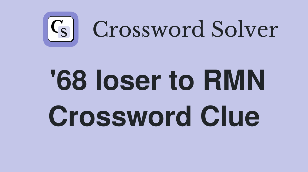 #39 68 loser to RMN Crossword Clue Answers Crossword Solver