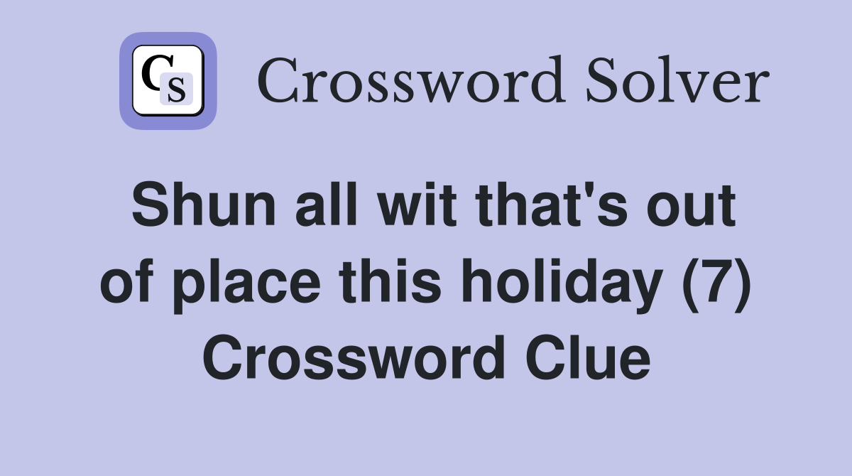 Shun all wit that #39 s out of place this holiday (7) Crossword Clue