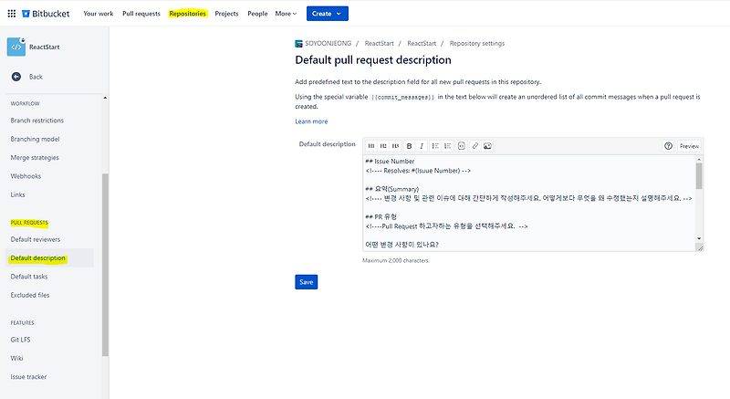 GIT Bitbucket PR(Pull Request) Template 만들기