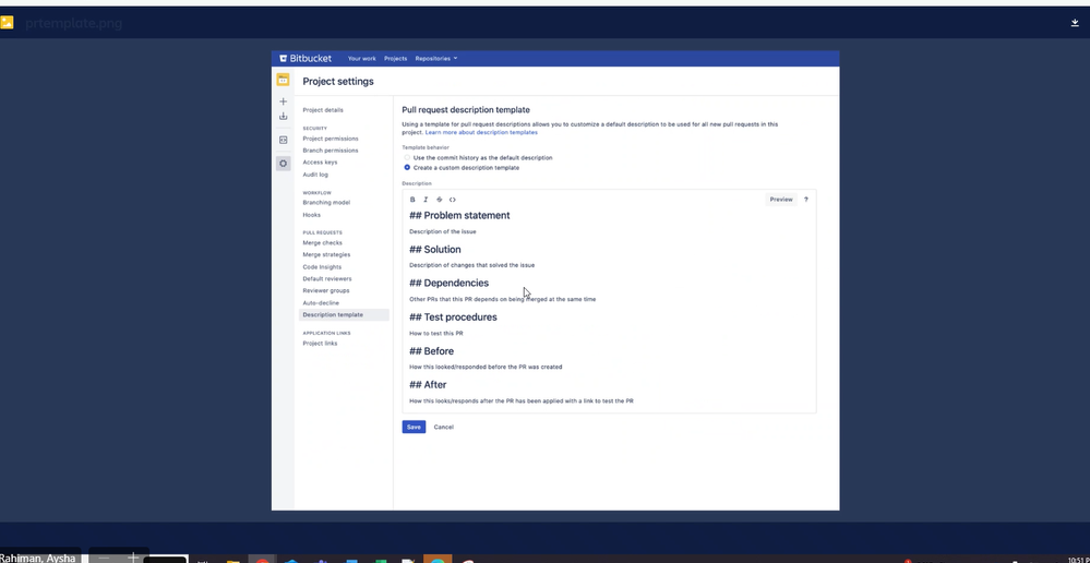 How to create a pull request template in Bitbucket