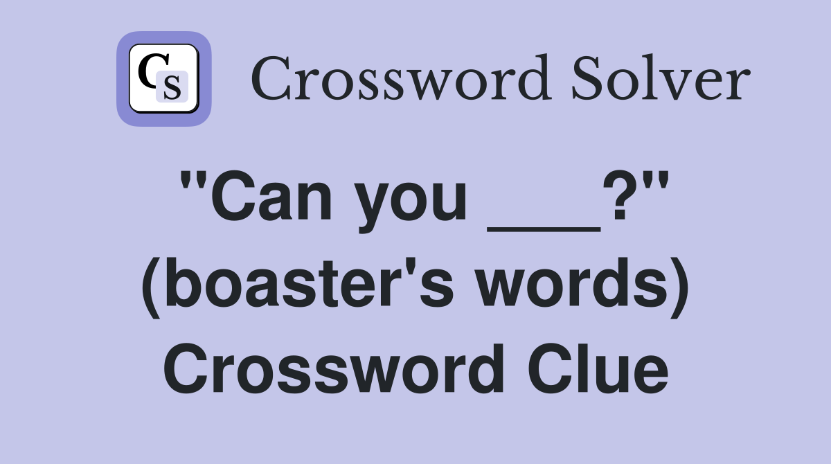 quot Can you ? quot (boaster #39 s words) Crossword Clue Answers Crossword