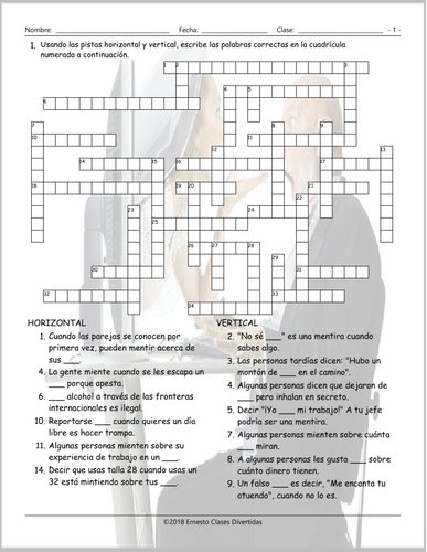 Cheaters and Dishonesty Spanish Crossword Puzzle Teaching Resources