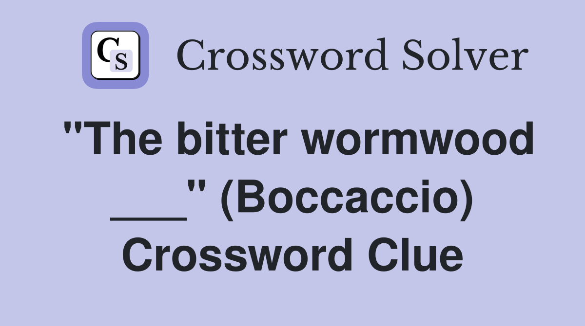 quot The bitter wormwood quot (Boccaccio) Crossword Clue Answers