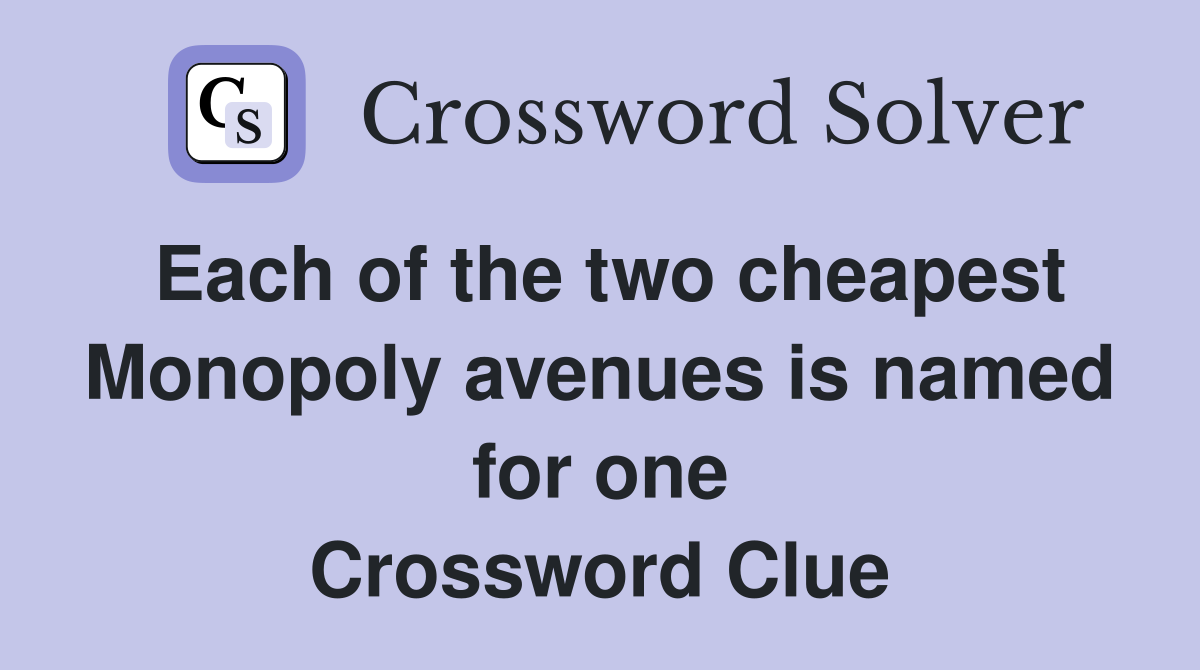 Each of the two cheapest Monopoly avenues is named for one Crossword
