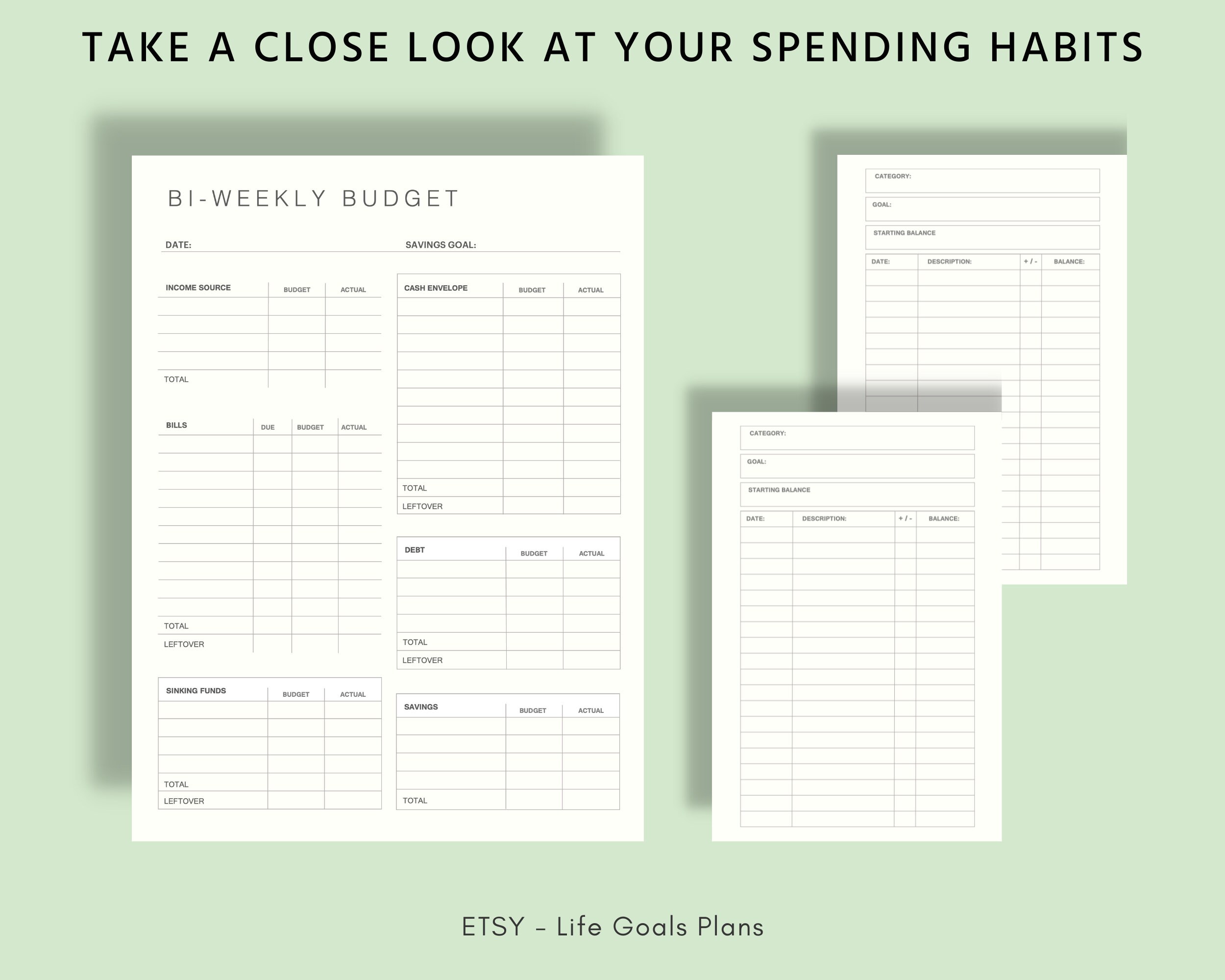 Bi weekly Bill Pay Budget Tracker 7 Colored Templates Etsy