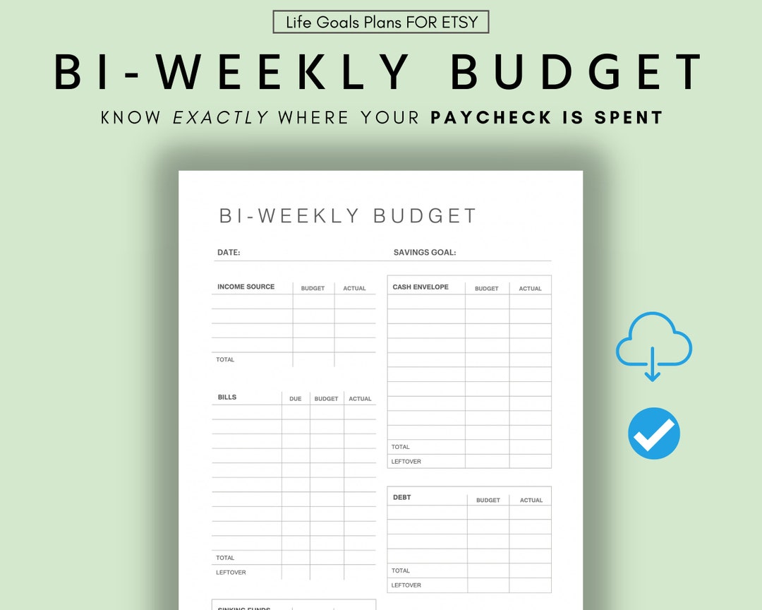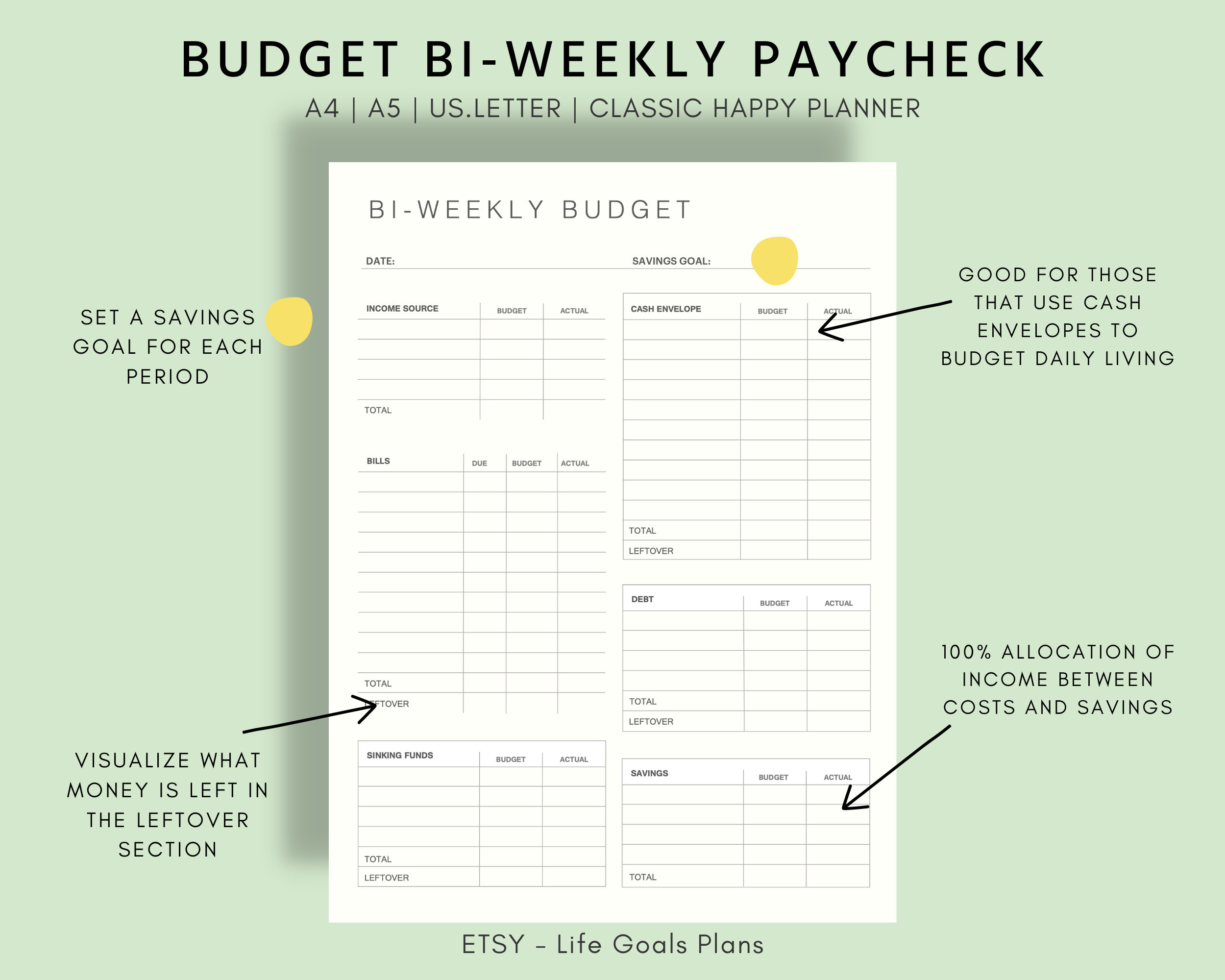 BI WEEKLY Budget Overview Template Printable Paycheck Budget Printable