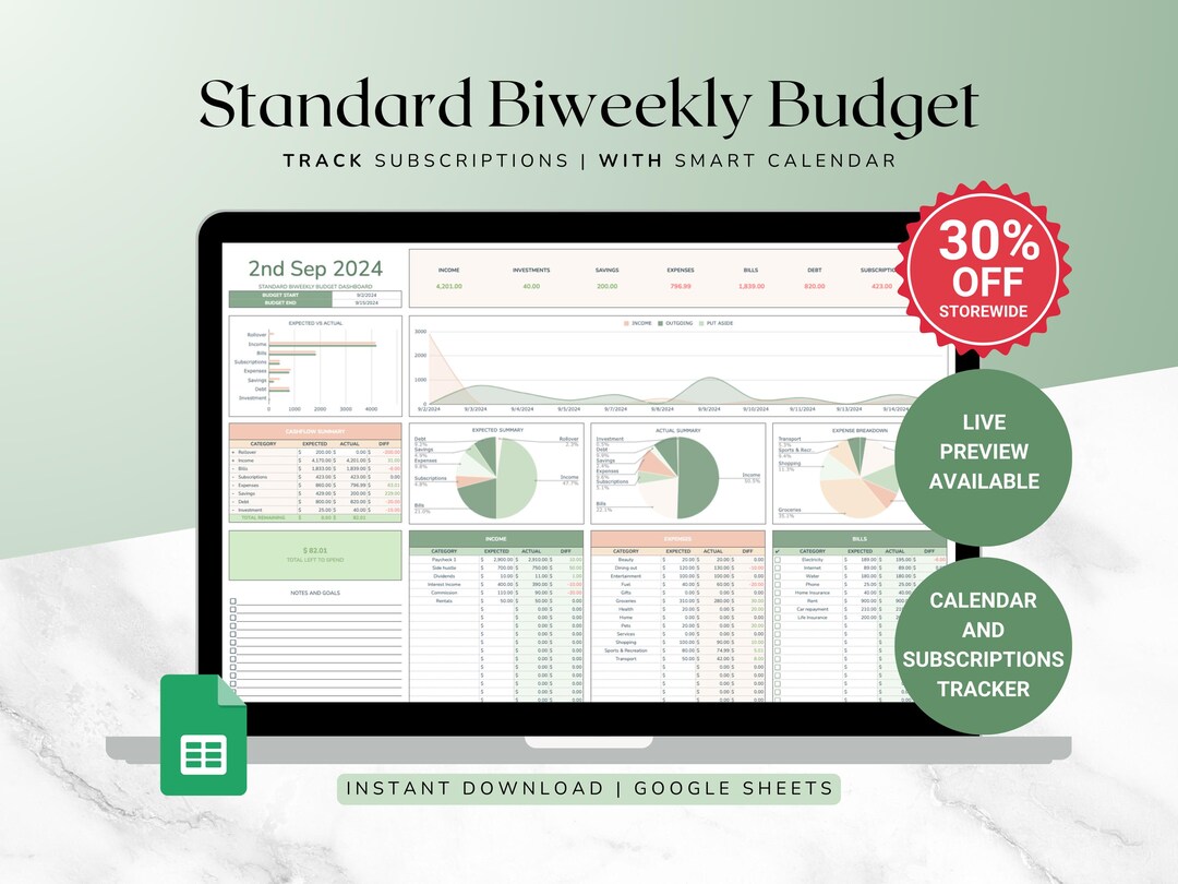 Biweekly Budget Google Sheets Template Etsy