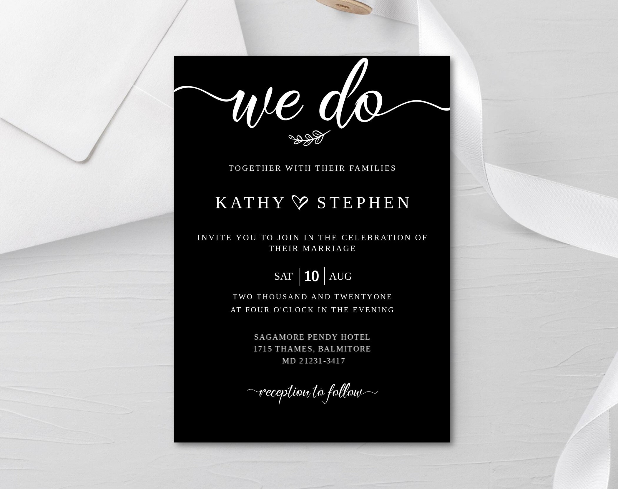 Black White Wedding Invitation Template Digital Wedding Etsy