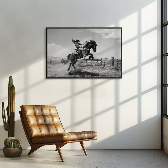 Cowboy Rodeo Wall Art Black And White Western Horse Photography Print
