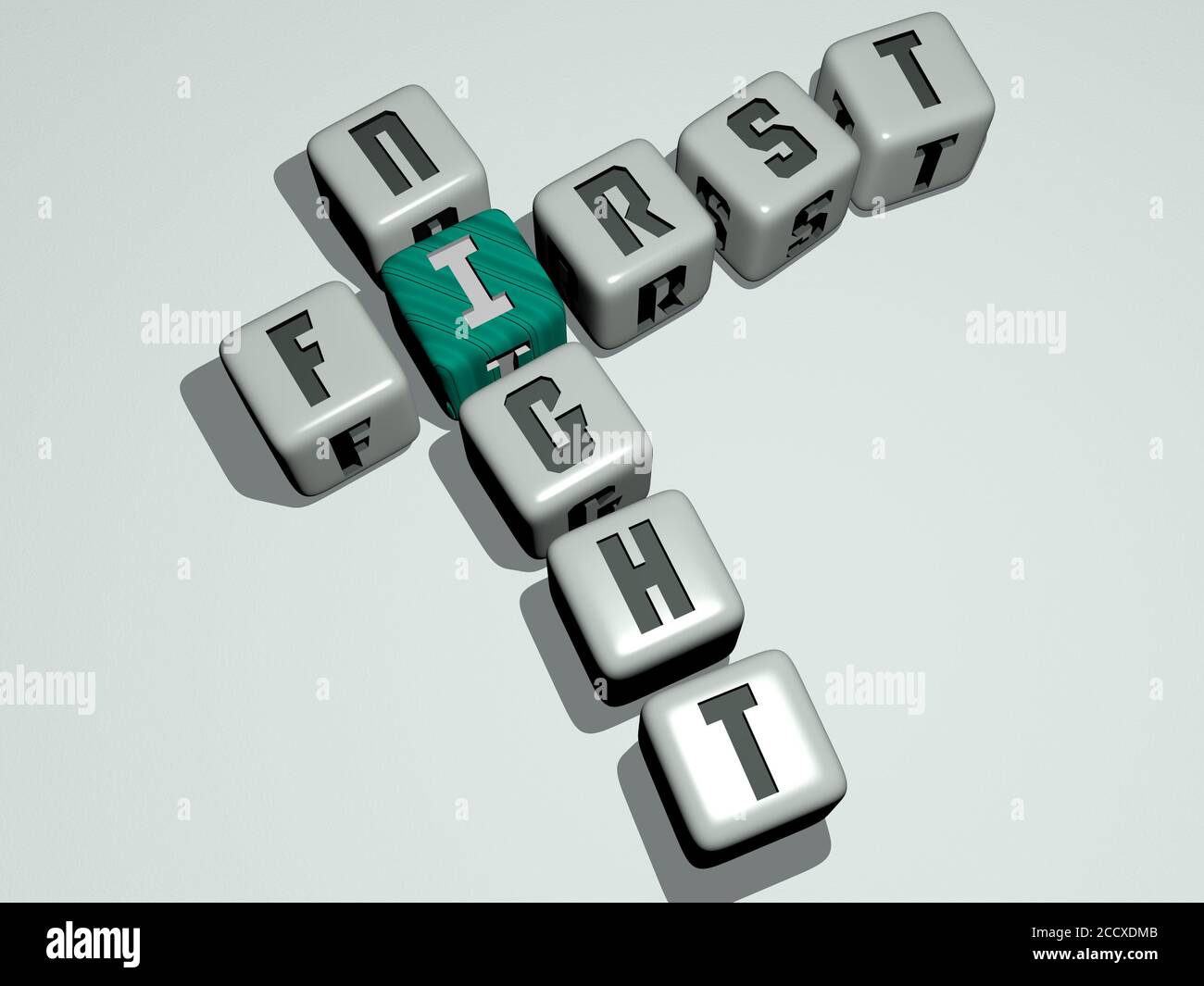 FIRST NIGHT crossword by cubic dice letters 3D illustration Stock