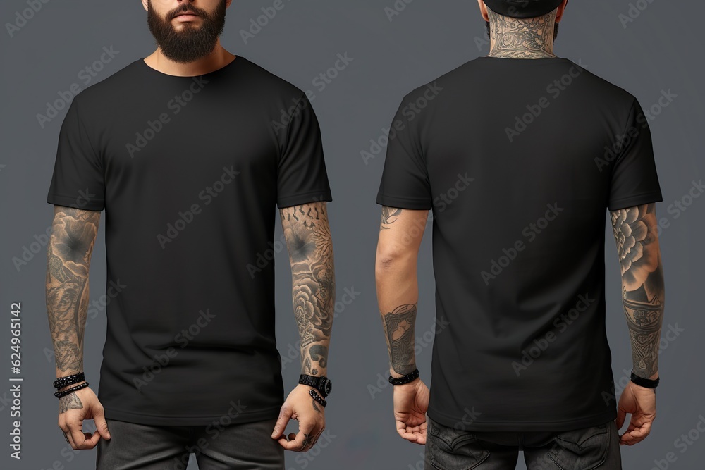 T shirt mockup Black blank t shirt front and back views male clothes