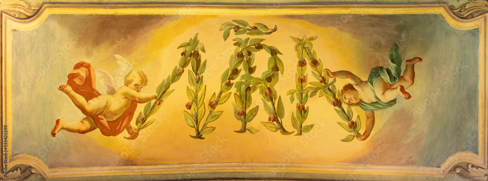 Poster BOLETO ITALY JULY 19 2022: The fresco of angels with the