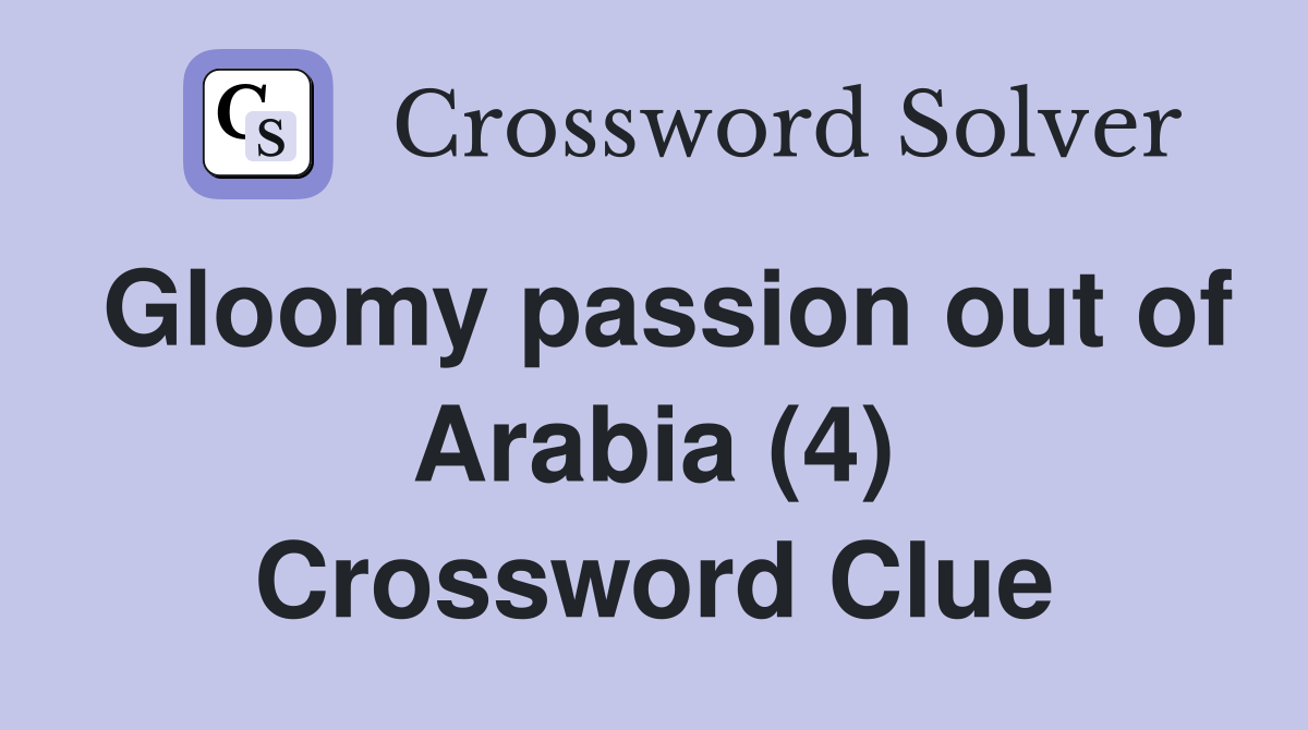 Gloomy passion out of Arabia (4) Crossword Clue Answers Crossword