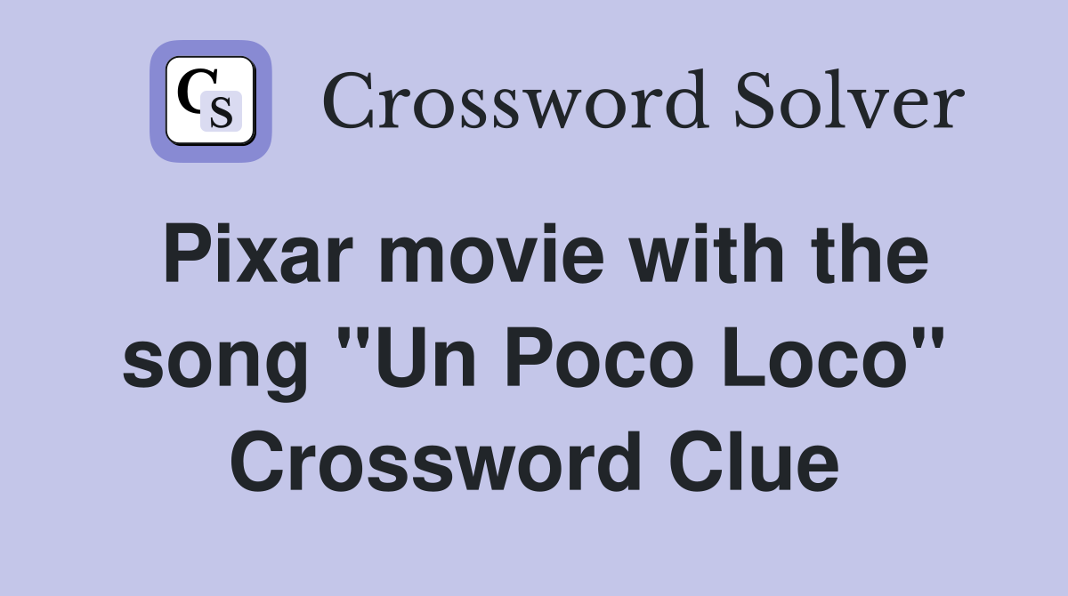 Pixar movie with the song quot Un Poco Loco quot Crossword Clue Answers