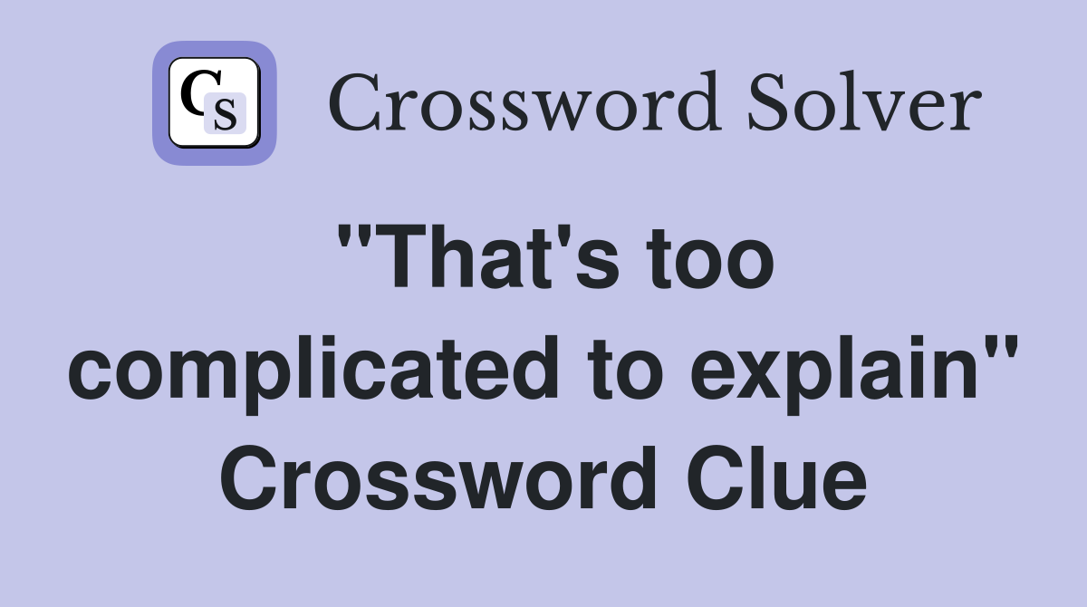 quot That #39 s too complicated to explain quot Crossword Clue Answers