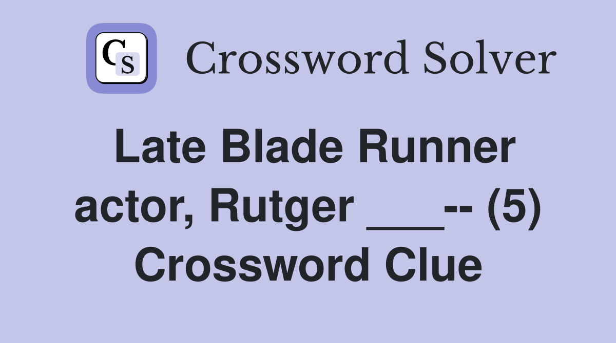 Late Blade Runner actor Rutger (5) Crossword Clue Answers