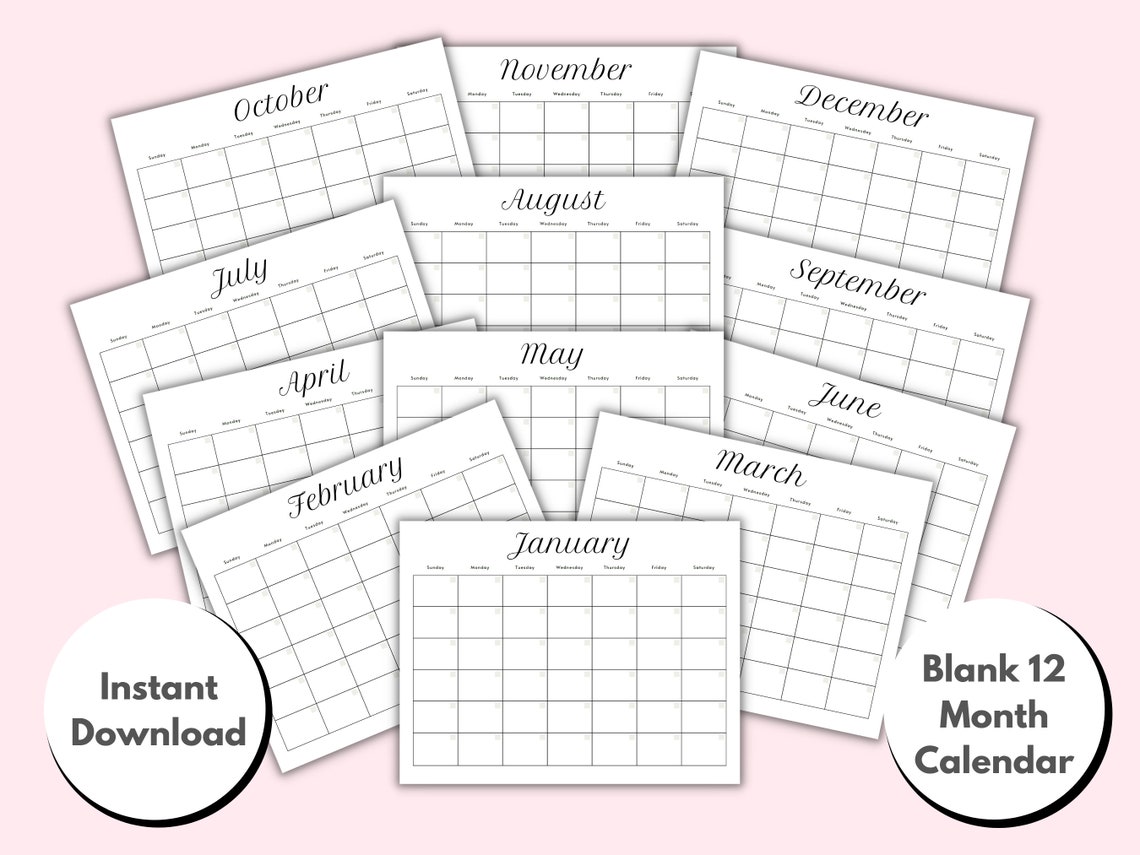 12 Month Calendar Blank Printable 2025 Calendar Printable