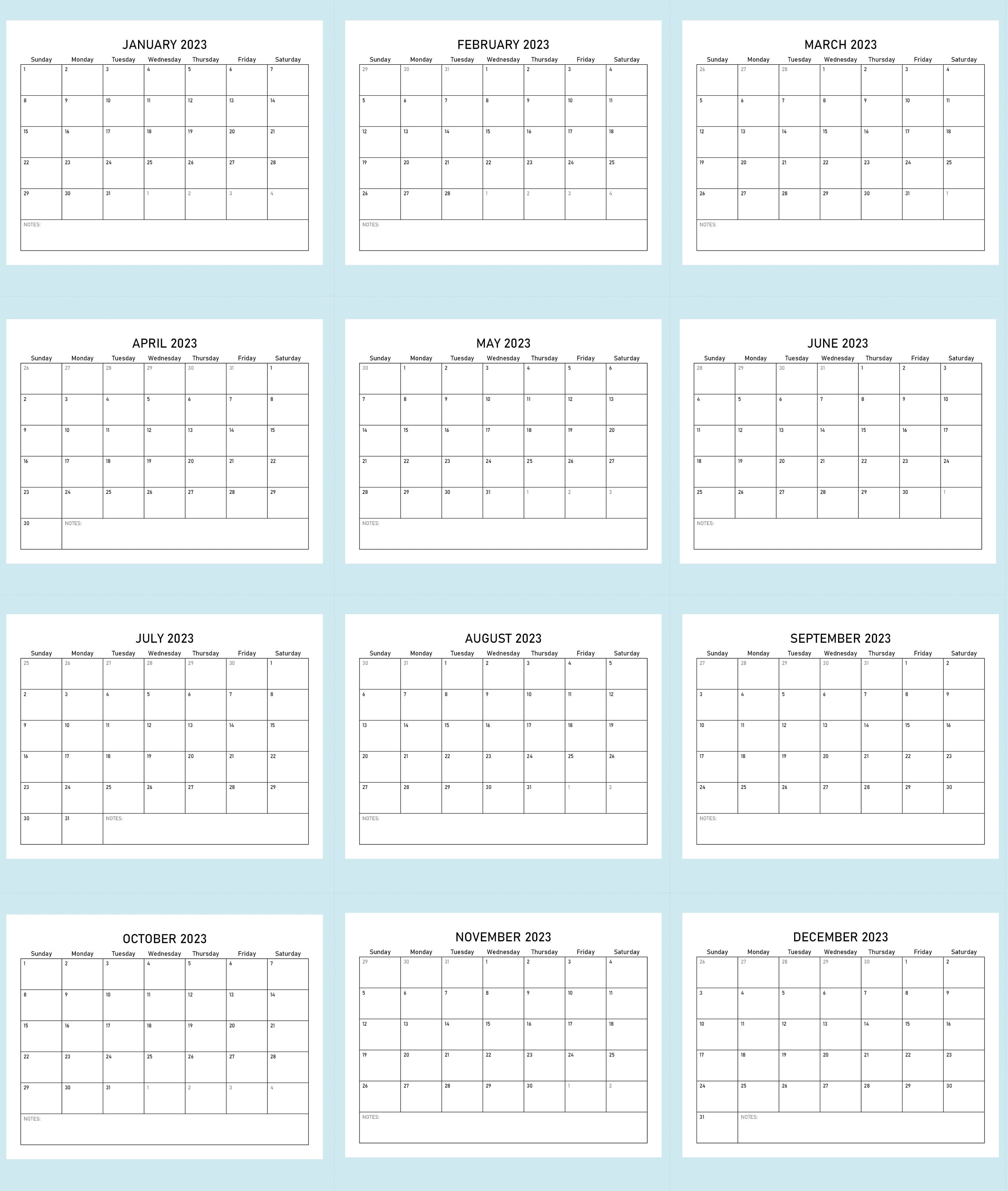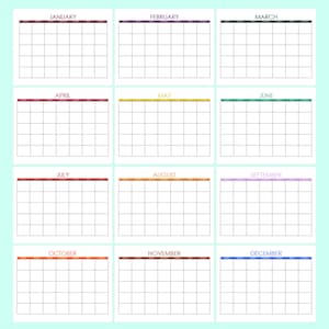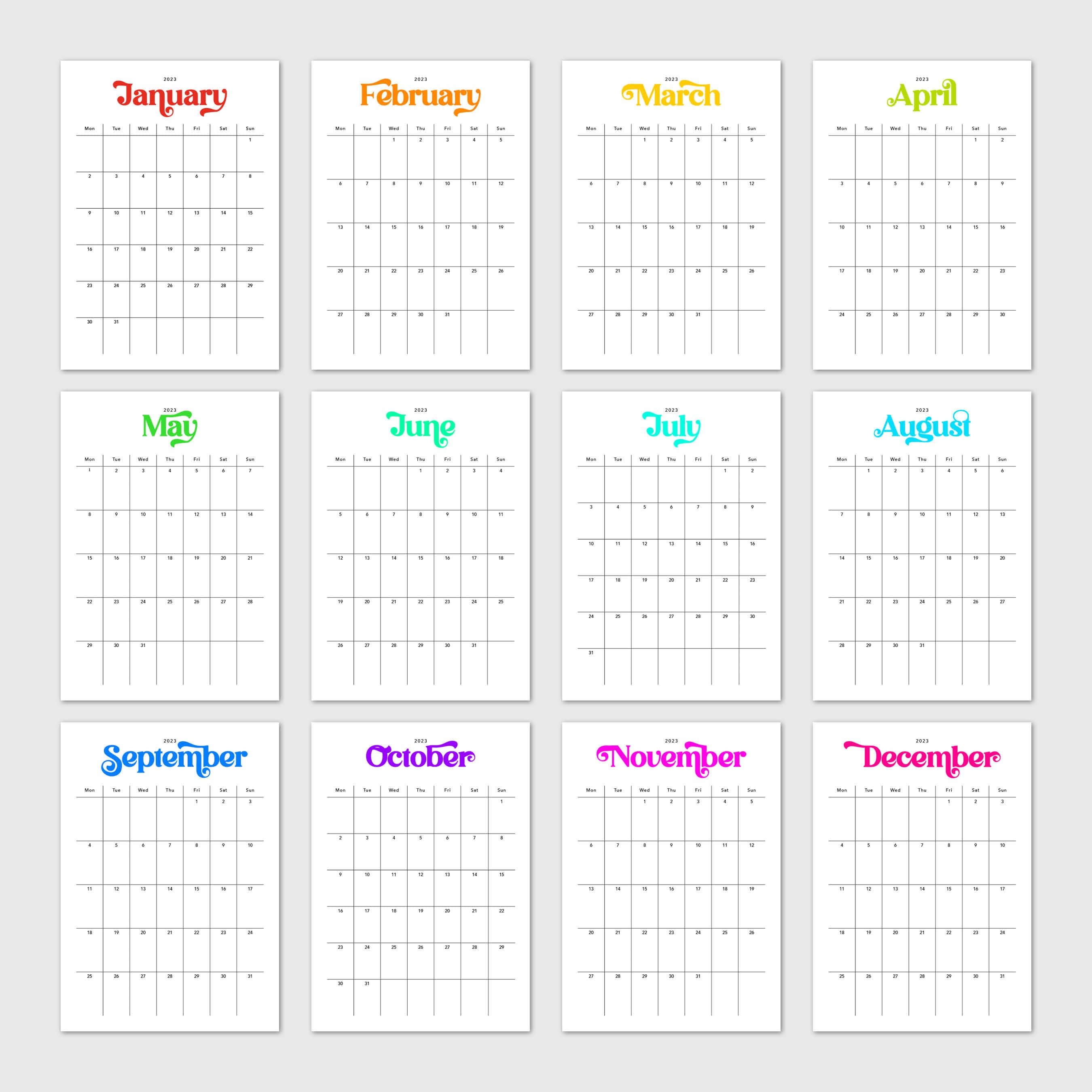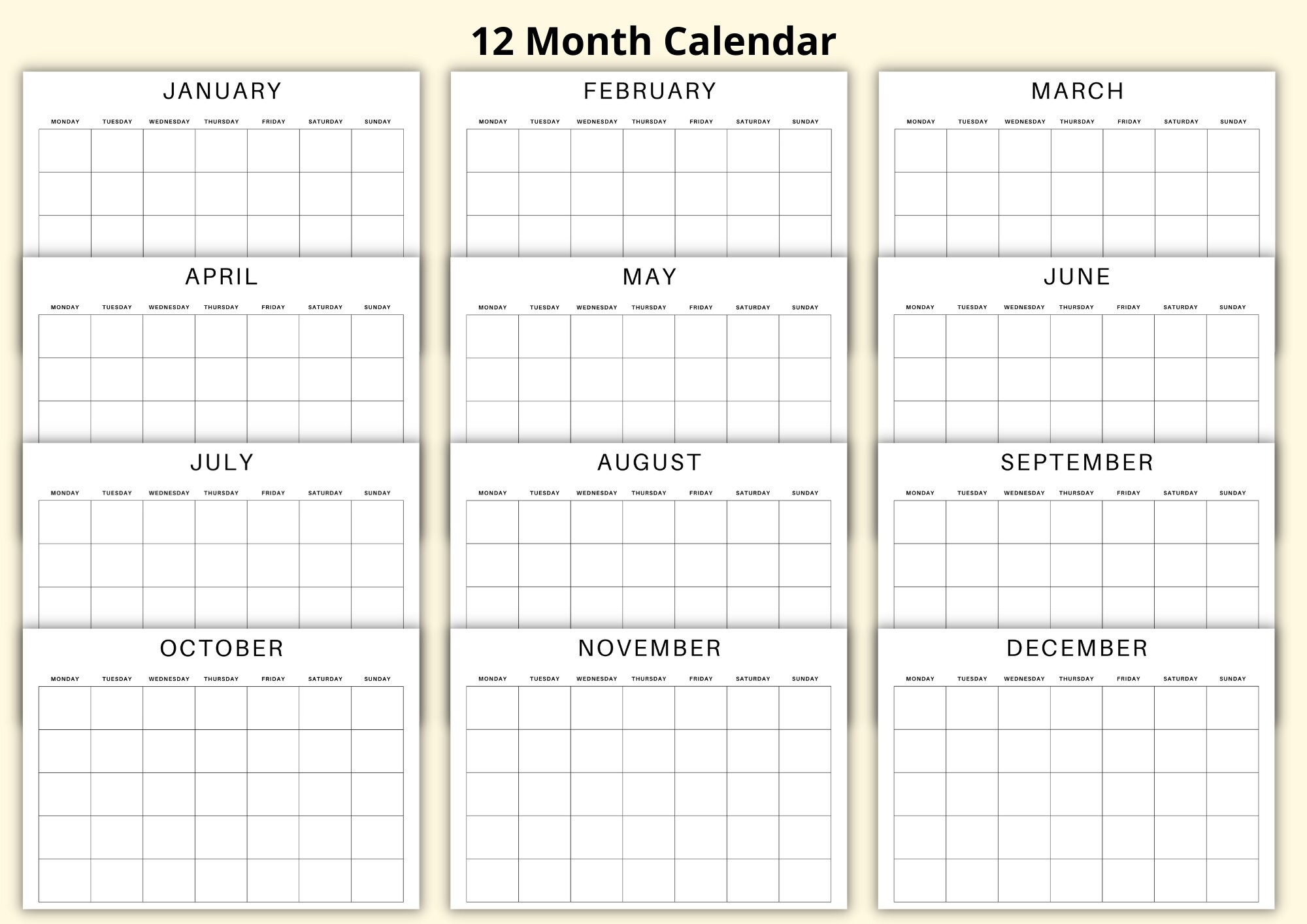 Printable 2023 Monthly Calendar Blank 12 Months Landscape Etsy