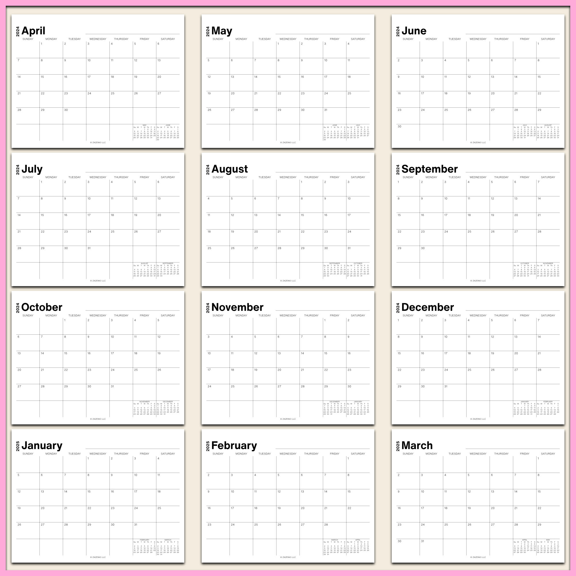 April 2024 Calendar Printable 12 Month Planner Digital Download PDF