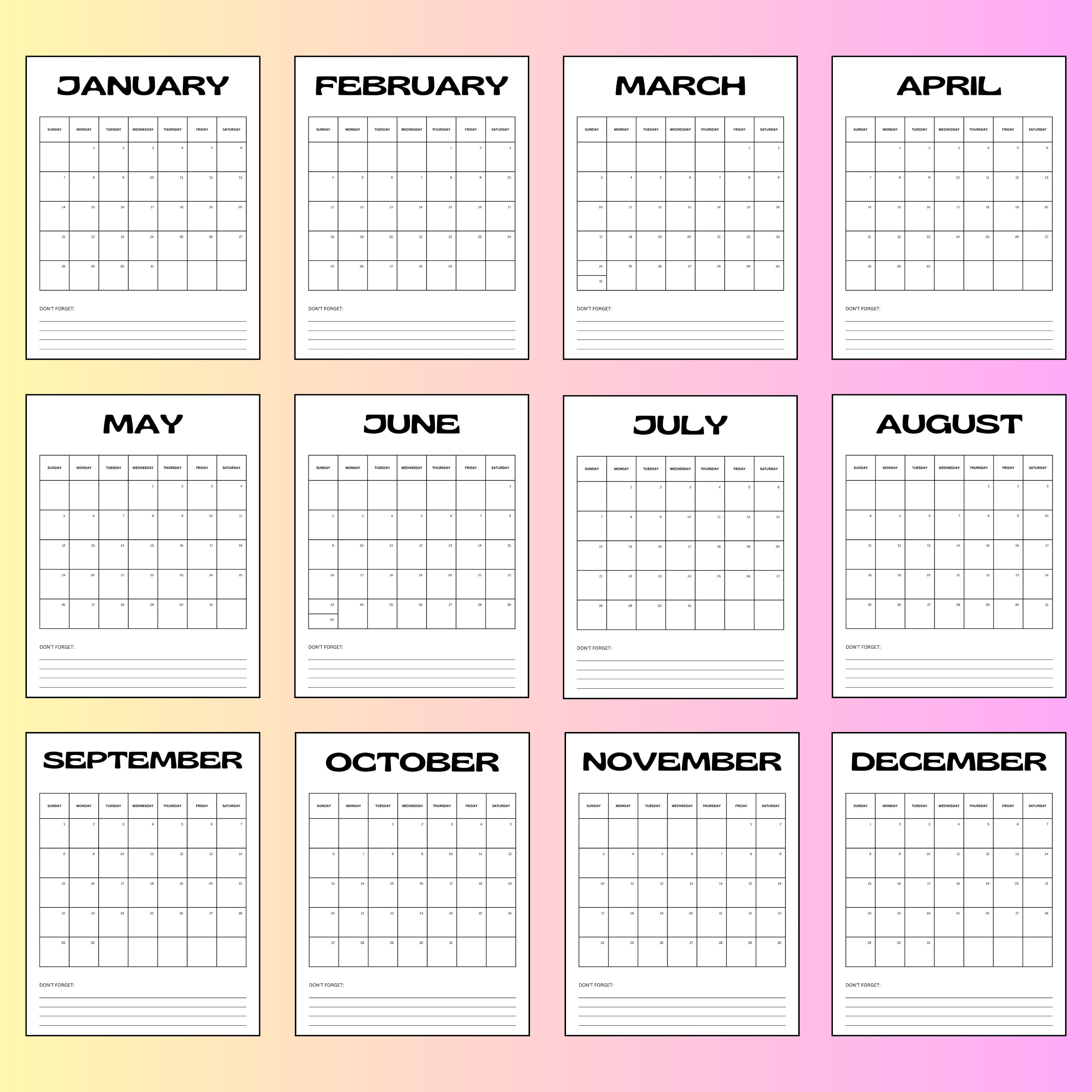 2024 Digital Calendar Monthly Printable PDF Etsy
