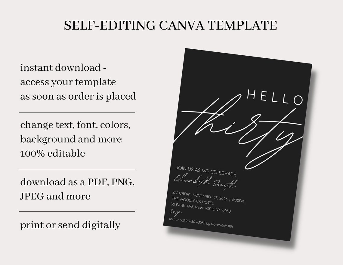 TEMPLATE 30th Birthday Invitation Template Classic Modern Minimal