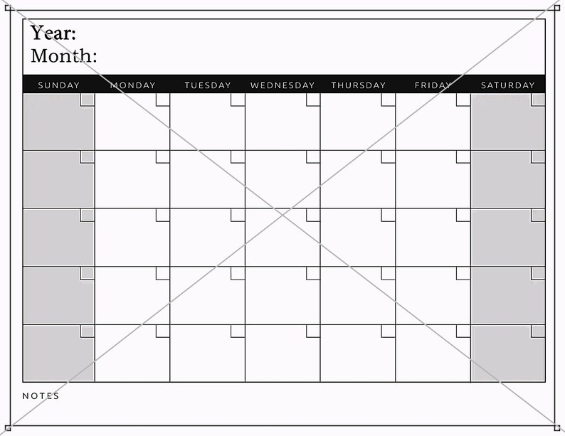 Blank Printable Calendar Template 8 5x11 Digital Download Etsy