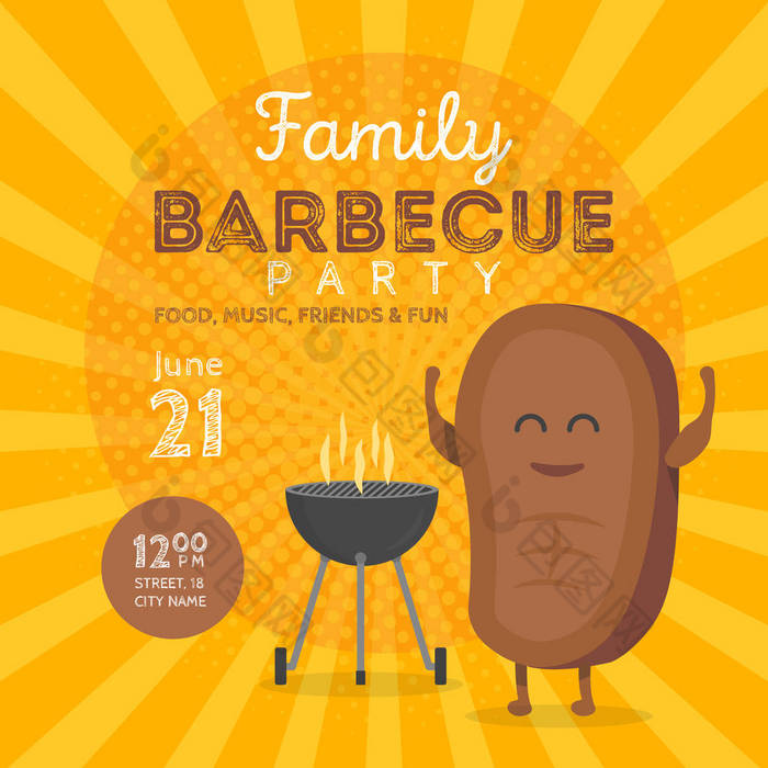 家庭烧烤聚会请柬模板可爱的牛排字符烧烤时图片 包图网企业站